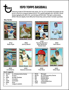 1970 Topps Baseball Cards Binder Inserts